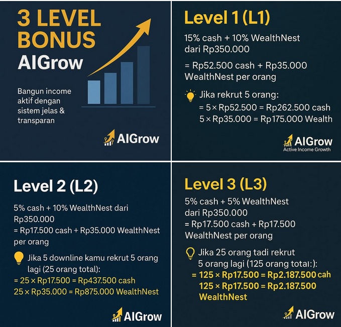 📊 Dengan sistem AIGrow, kamu dapat bonus dari 3 level: